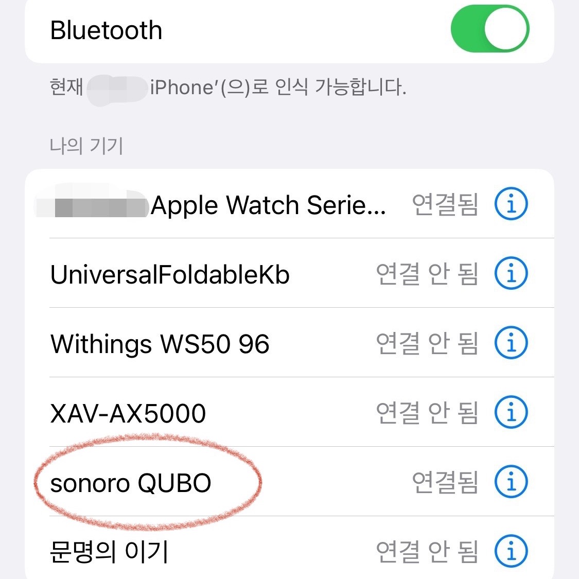 아이폰 블루투스 목록엔 소노로 큐보가 보이고 있었지만 큐보가 저 모양이니 그냥 새로 페어링 하자는 가벼운 마음으로 아이폰에서 큐보를 삭제했는데…